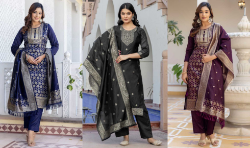 Swades Creations offers festive ethnic wear in suit set styles that feel elegant without being heavy. Light embroidery, woven details, and soft dupattas add a celebratory touch. These suit sets work well for family gatherings, festive meals, and casual celebrations throughout the day.